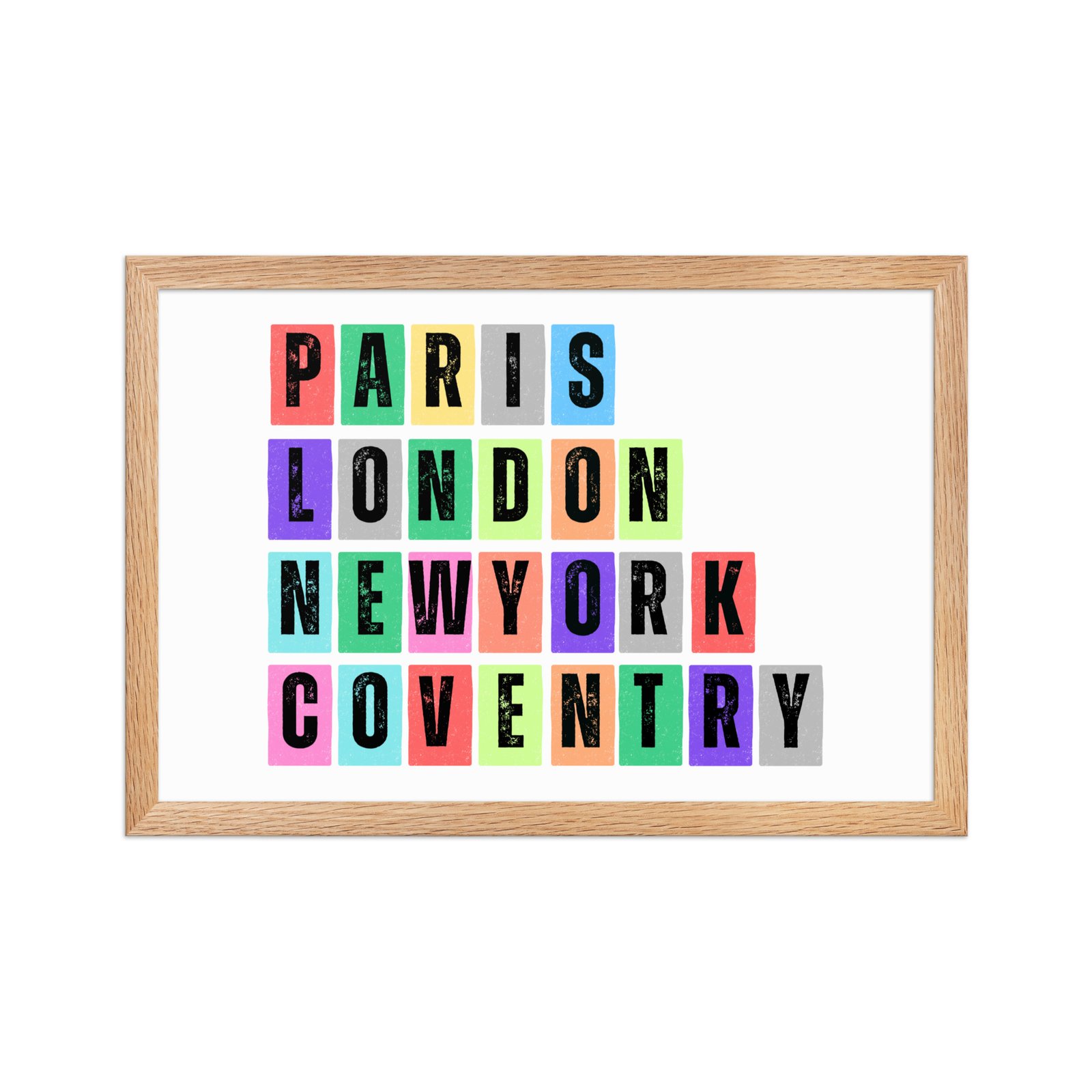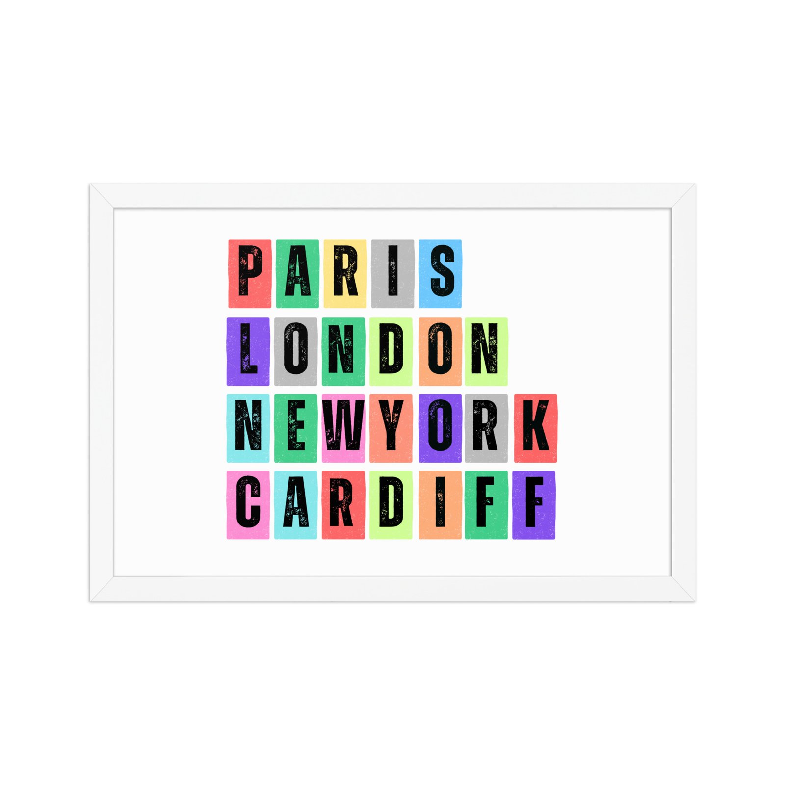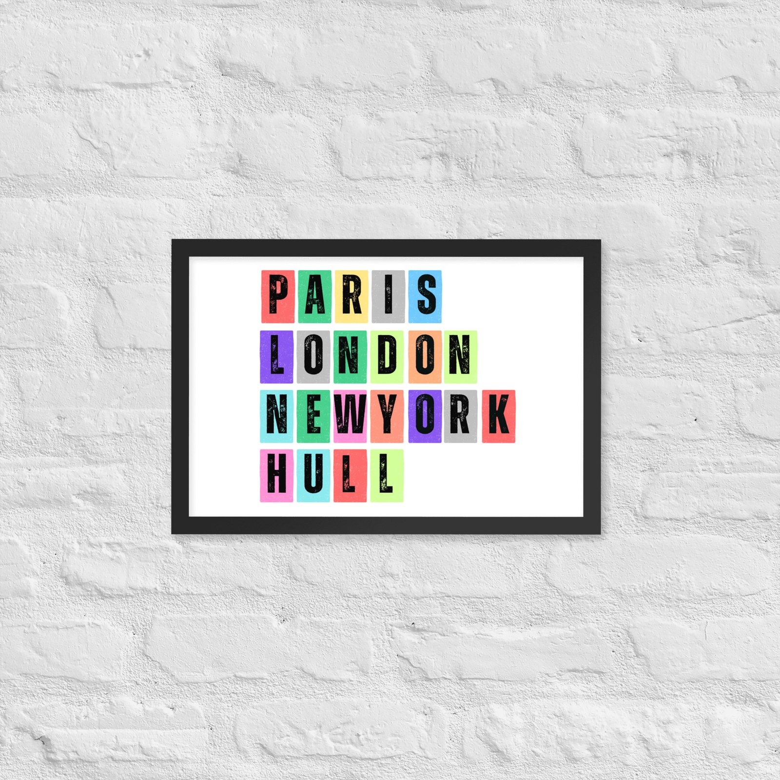 A play on your favourite place along with world renowned locations, presented on a framed matte paper poster in a choice of frame colours.